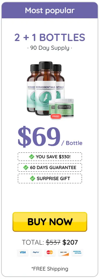 At this moment you can order Kerassentials supplement for 73% OFF + FREE Shipping. This is a Limited-Time Offer and it won’t be available for long.